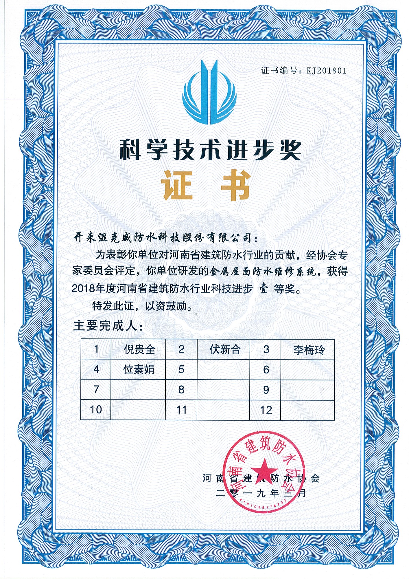 河南省優(yōu)質(zhì)建筑防水工程獎(jiǎng)