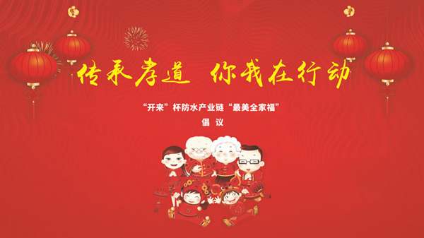 由中國(guó)建設(shè)報(bào)、中國(guó)防水產(chǎn)業(yè)鏈交流平臺(tái)主辦,由上海市化學(xué)建材行業(yè)協(xié)會(huì)建筑防水分會(huì)、河南省建筑防水協(xié)會(huì)、湖北省建筑防水協(xié)會(huì)、江西省建筑業(yè)協(xié)會(huì)防水分會(huì)、吉林省建筑防水協(xié)會(huì)、河北省建筑防水協(xié)會(huì)、海南省建筑滲漏治理協(xié)會(huì)、平輿建筑防水協(xié)會(huì)、石首市建筑防水行業(yè)協(xié)會(huì)、青島市建筑防水保溫協(xié)會(huì)、開來(lái)濕克威防水科技股份有限公司黨支部聯(lián)合承辦的傳承孝道,感恩有您!第一屆開來(lái)杯防水產(chǎn)業(yè)鏈“最美全家?!痹u(píng)選活動(dòng)2019年2月1日開始,于2019年3月21日落下帷幕。