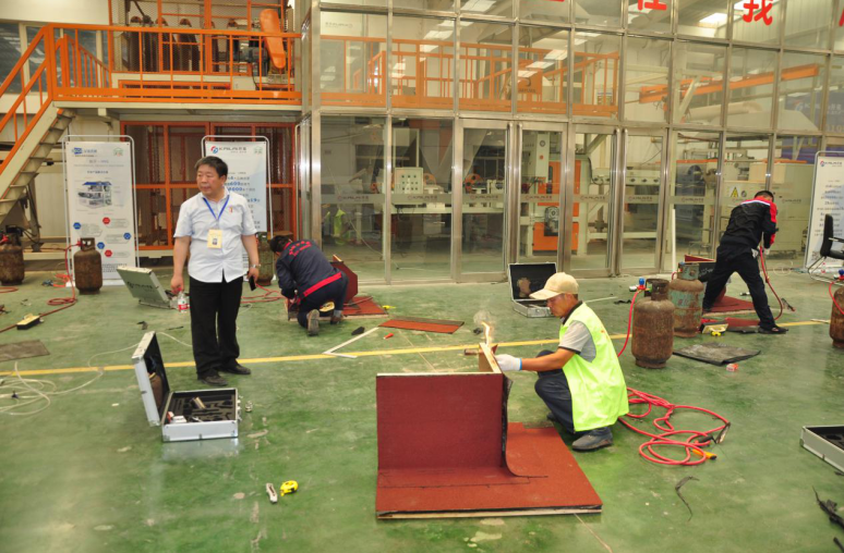 開(kāi)來(lái)濕克威噴涂組選手王文彬、劉華良賽前準(zhǔn)備