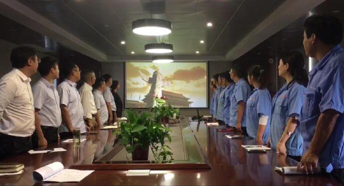 與會(huì)人員共唱國(guó)歌慶祝中華人民共和國(guó)建國(guó)70周年