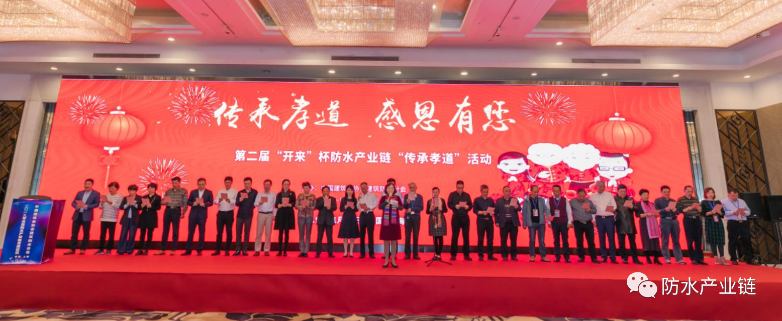在湖北防水協(xié)會(huì)會(huì)長桂春芳帶下,30位會(huì)長、專家、產(chǎn)業(yè)鏈企業(yè)代表共同宣讀傳承孝道,感恩有您!第二屆“開來杯”傳承孝道,你我在行動(dòng)倡議書!