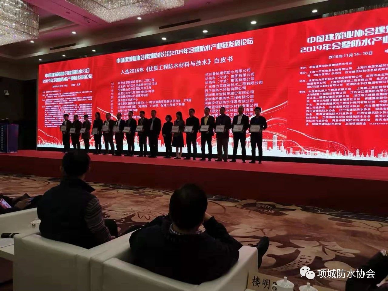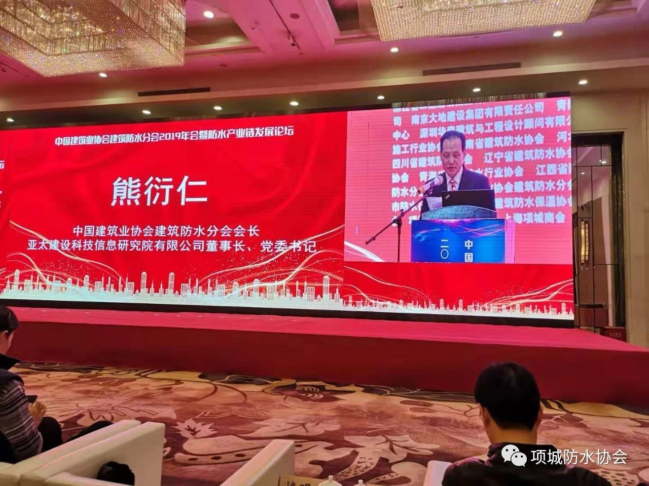 11月15日,中國建筑業(yè)協(xié)會建筑防水分會2019年會暨防水產(chǎn)業(yè)鏈發(fā)展論壇在上海召開。中國建筑業(yè)協(xié)會會長、原住建部總工程師、辦公廳主任王鐵宏,中國工程院院士肖緒文,中國建筑業(yè)協(xié)會副秘書長景萬,中國建筑業(yè)協(xié)會建筑防水分會會長熊衍仁、專家委員會名譽(yù)主任葉琳昌、專家委員會主任曲慧、常務(wù)副會長兼秘書長張可文等領(lǐng)導(dǎo)、專家及全國各地防水同行、地方防水社團(tuán)組織領(lǐng)導(dǎo)、國內(nèi)外專家學(xué)者共近300人出席會議。項(xiàng)城市政協(xié)副主席、防水協(xié)會會長王養(yǎng)嶺率領(lǐng)項(xiàng)城防水代表團(tuán)參加此次大會。