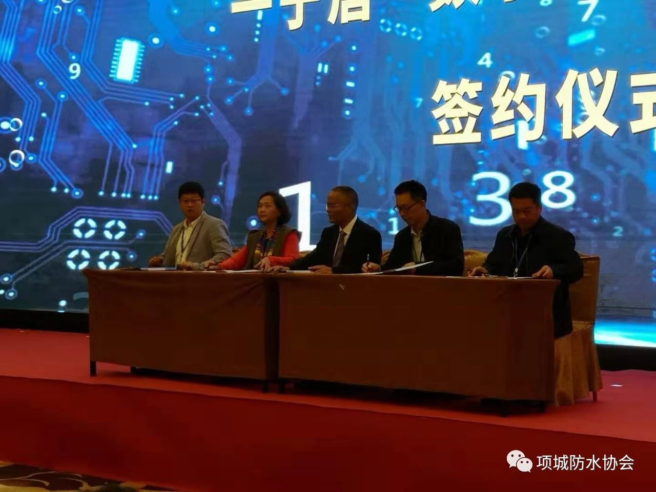 王養(yǎng)嶺會長(右二)在防水產(chǎn)業(yè)鏈平臺簽約儀式上簽字