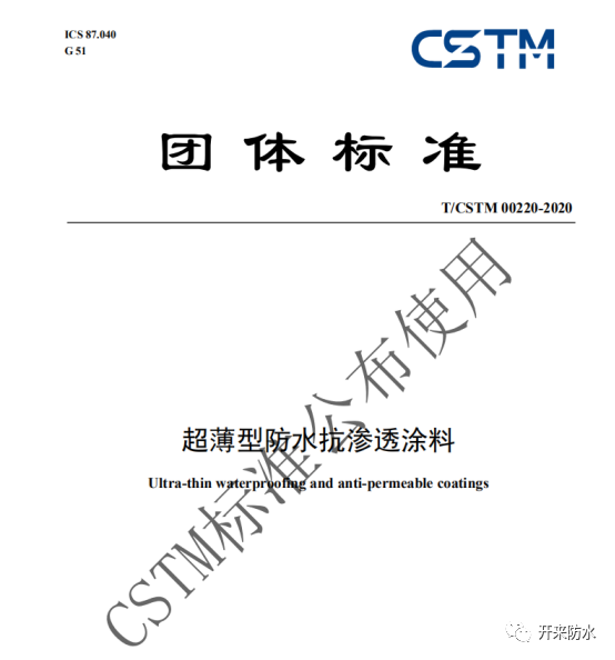 《超薄型防水抗?jié)B透涂料》標(biāo)準(zhǔn)規(guī)定了超薄型防水抗?jié)B透涂料的要求、試驗(yàn)方法、檢驗(yàn)規(guī)則及標(biāo)志、包裝和貯存。適用于以丙烯酸酯聚合物為主要成膜物,加入助劑等制成的施工干膜厚度小于100μm的水性單組分防水抗?jié)B透涂料。該產(chǎn)品主要用于廚房間、衛(wèi)生間、陽臺(tái)等建筑表面。據(jù)悉,該標(biāo)準(zhǔn)將與2020年7月14日正式發(fā)布實(shí)施。