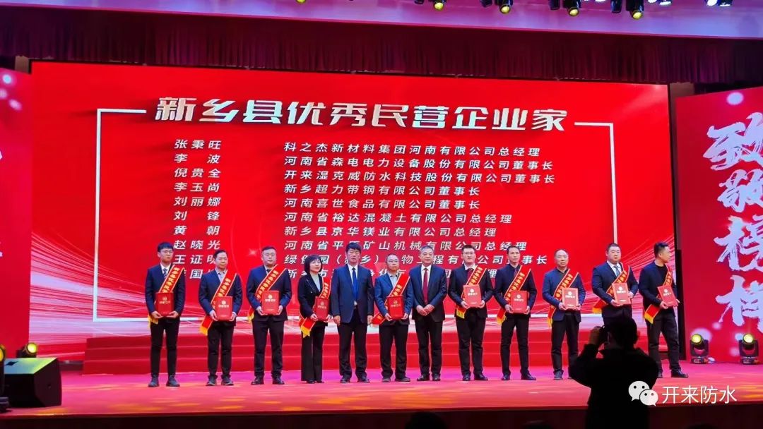 2023年2月4日上午,新鄉(xiāng)縣組織舉辦了《新鄉(xiāng)縣民營經(jīng)濟高質(zhì)量發(fā)展暨2022年綜合表彰頒獎典禮》大會,會上對全縣的優(yōu)秀民營企業(yè)、優(yōu)秀民營企業(yè)家、先進單位和先進個人進行了表彰和頒獎,開來濕克威防水科技股份有限公司董事長倪貴全先生榮獲優(yōu)秀民營企業(yè)家稱號。
