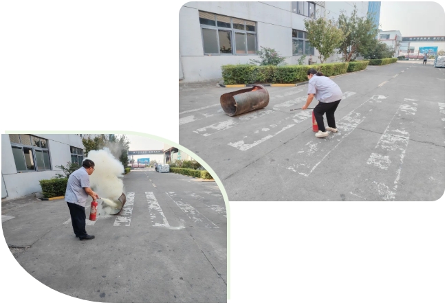 隨后,演練進(jìn)入了實(shí)操環(huán)節(jié)。員工們分別進(jìn)行滅火器使用演練,親身體驗(yàn)了滅火器的操作流程,迅速掌握了滅火器的“提、拔、握、壓”四步操作法,確保在火災(zāi)發(fā)生時(shí)能夠冷靜應(yīng)對(duì)。