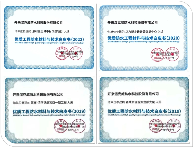 我司參建的西咸新區(qū)能源金融大廈、正商濱河名筑、華為新鄉(xiāng)云計算數(shù)據(jù)中心等已入選往年《優(yōu)質(zhì)工程防水材料與技術(shù)》白皮書,這是行業(yè)對我司的產(chǎn)品、技術(shù)、服務(wù)等防水工程質(zhì)量綜合實力的充分肯定與認可,更是對我司的激勵和鞭策。