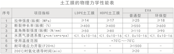 按組分分為:低密度聚乙烯(LDPE)土工膜、高密度聚乙烯(HDPE)土工膜和EVA土工膜。