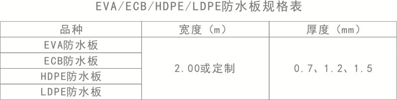 按原料分為EVA/ECB/HDPE/LDPE防水板。
