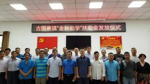 近日,開來集團(tuán)董事長倪貴全參加了在古固寨鎮(zhèn)史屯村委會會議室舉行的“金秋助學(xué)”扶助金發(fā)放儀式,出席本次會議的人員還有古固寨鎮(zhèn)黨委書記楊牧、鎮(zhèn)長范曉哲、鎮(zhèn)黨委副書記、人大主席楊榮華、政府常務(wù)副鎮(zhèn)長高黎偉、鎮(zhèn)黨委委員張梅、著名歌手冷漠及其他企業(yè)家、各界愛心人士。